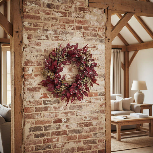60cm Christmas Winter Wreath - Red Berry & Mistletoe Leaf