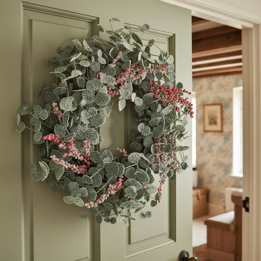 70cm Christmas Winter Wreath - Snow Dusted Eucalyptus & Red Berry